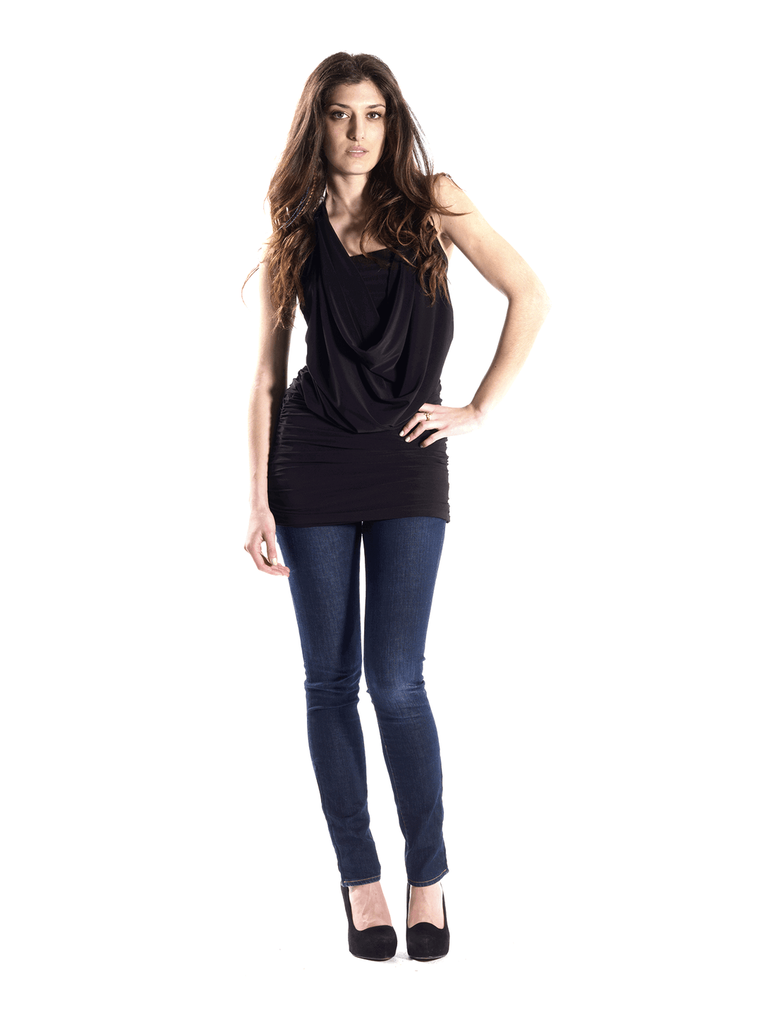 Dare to be bold with this black halter top featuring a cowl neck and side ruching. Whether you wear it alone or under your favorite jacket, this head-turning top is a great addition to your closet. - 95% Polyester, 5% Spandex - Made in USA