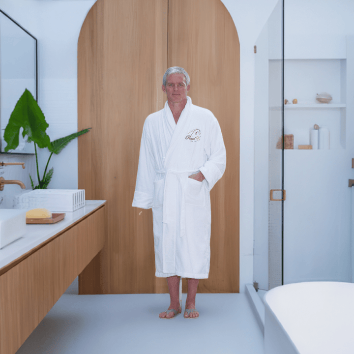 Crafted from 100% premium Turkish cotton, the Zen Robe for Him delivers hotel-quality comfort at home. French-seamed for lasting durability — built to stay soft wash after wash, not fall apart after a few months.