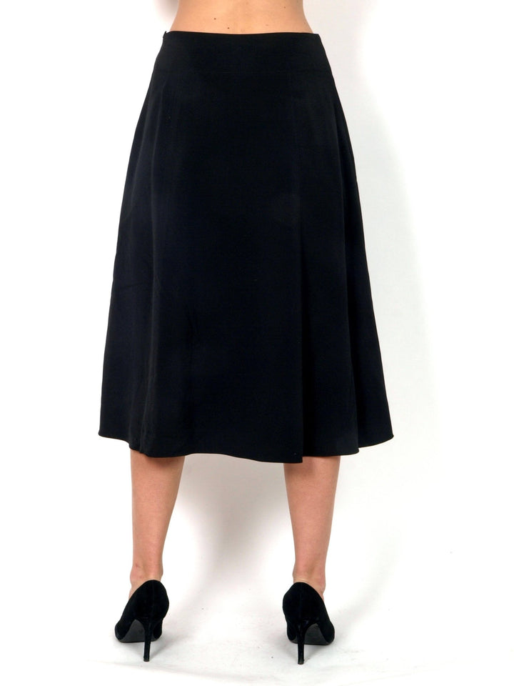 Comfortable, black skirt, wider cut, on the folds. Length below the knee. Higher waist that narrows visually. Model skirts wear in various combinations, both business and casual. Composition: 62% polyester fiber, 35% artificial silk, 3% spandex.