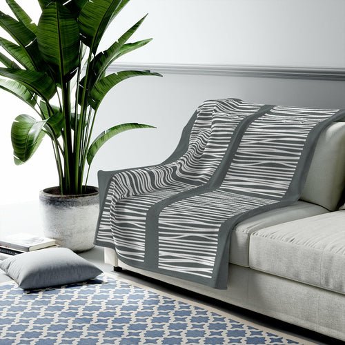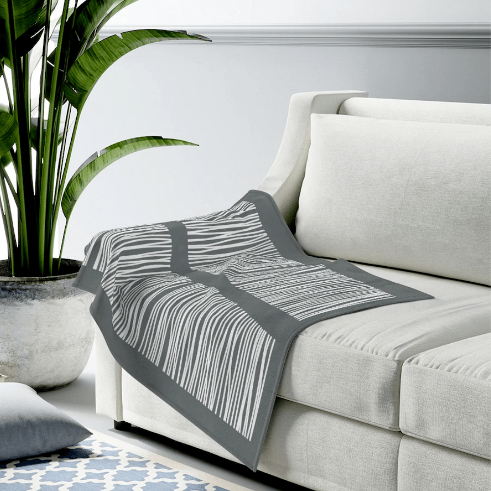 Dark Gray Abstract Lines Plush Blanket Throw - Home Decor - Croatian Designer Fashion - Raul E New York
