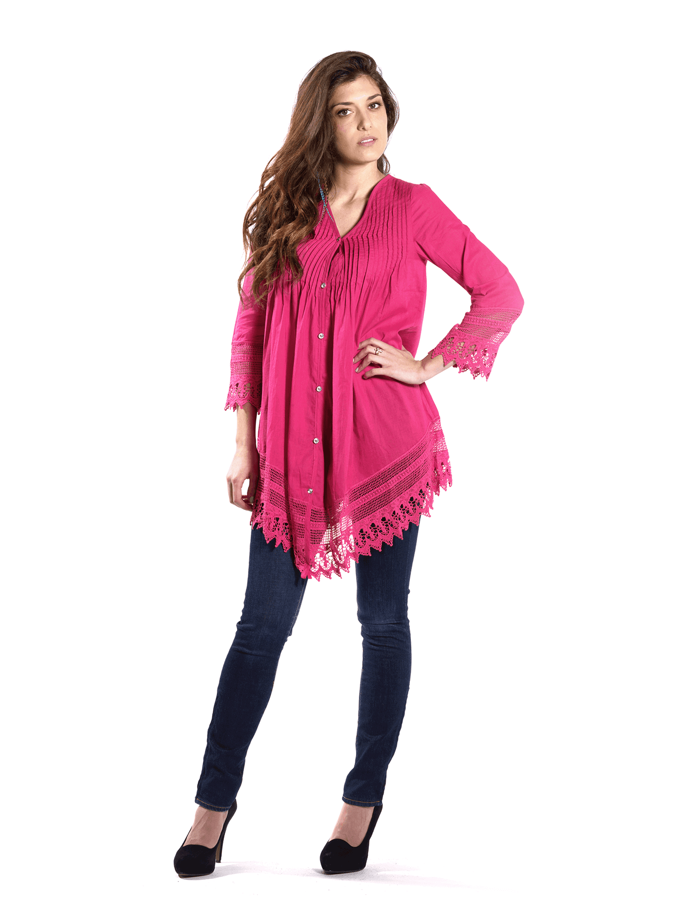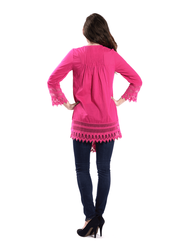 Pink Top with Crochet Detail - Croatian Designer Fashion - Raul E New York